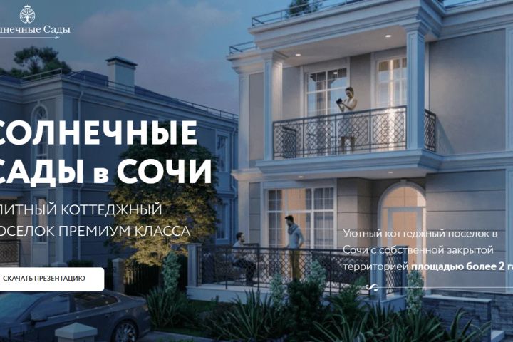 Сайт для коттеджного поселка в Сочи - "Солнечные сады". По макету Figma. Mobile first разработка с учетом аудитории клиента.