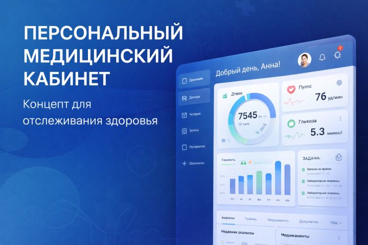 Это концептуальный проект персонального медицинского кабинета, в котором пользователь может хранить и отслеживать свои медицинские показатели, анализы, приёмы лекарств и историю посещений врачей.