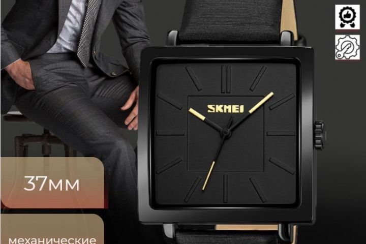 Создать привлекательную визуальную презентацию механических часов SKMEI для потенциальных покупателей, акцентировав внимание на ключевых характеристиках товара.