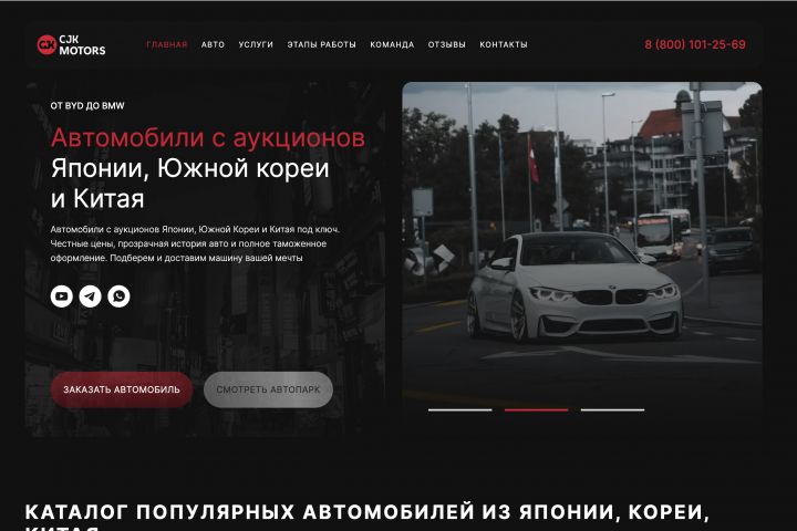 Клиент — компания CJK Motors, занимающаяся продажей автомобилей с аукционов, обратился с задачей создать современный и функциональный веб-сайт, который позволит представлять автомобили, привлекать новых покупателей и облегчить процесс выбора и покупки автомобилей онлайн.