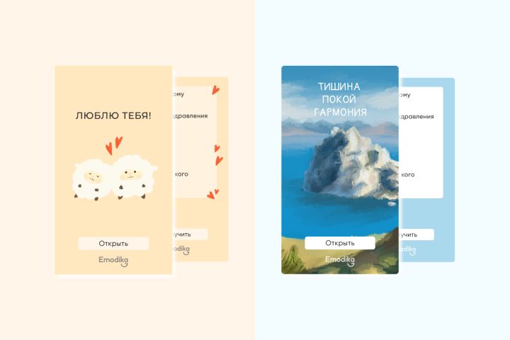 Создать набор открыток для сайта Emodika.ru.