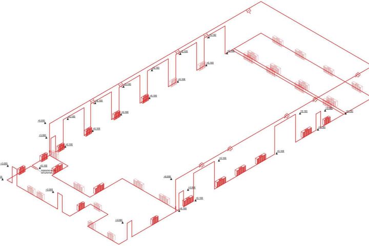 Разработка рабочих чертежей систем отопления и вентиляции для здания автосервиса на основе архитектурных чертежей, ТЗ заказчика под конкретные конвекторы Vulcano и с учётом климатических характеристик региона (ХМАО)