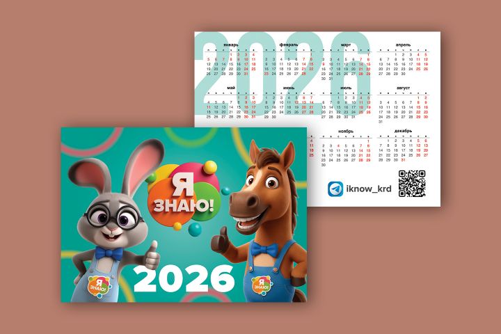 Была задача создать карманный календарь на 2026 год с фирменным персонажем, который будет подарен участникам квиза на новогодней игре.
