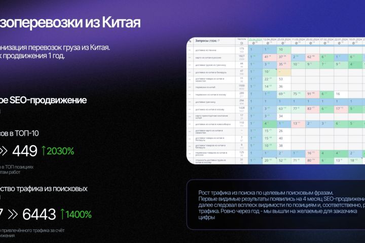 Первые видимые результаты появились на 4 месяц SEO-продвижения,