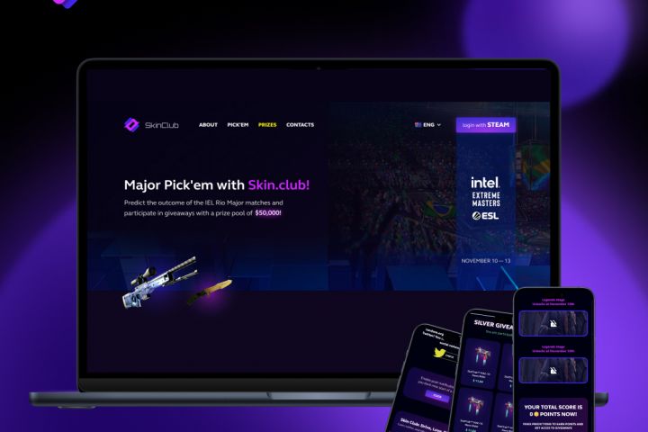 Нашей командой была разработана онлайн-платформа для киберспортивного ресурса Skin.club. Участники мероприятия могли авторизоваться через Steam и делать прогнозы на результаты матчей.