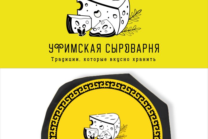Необходимо было предоставить 2 минималистичных варианта логотипа Уфимской сыроварни и визуализация упаковки с сыром.