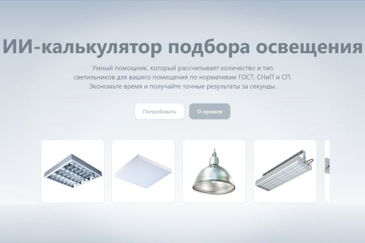Проект разрабатывался по запросу организации, производящей светотехнические решения, как инженерный инструмент для расчёта освещённости и подбора светильников под нормативы (СП/СНиП/ГОСТ) и бюджетные ограничения.