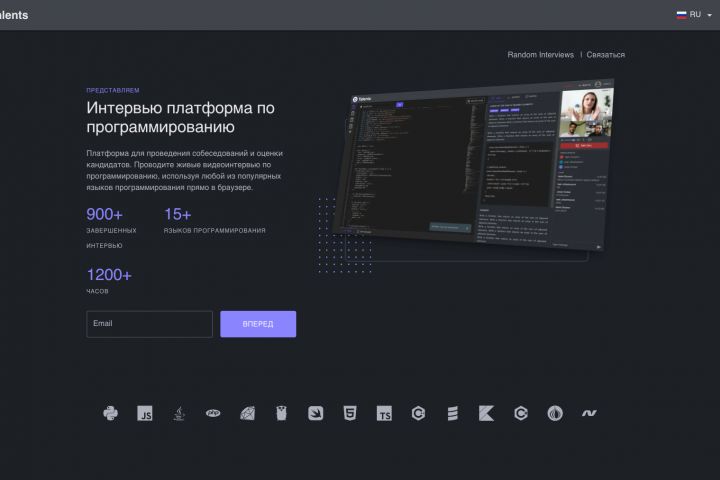 Разрабатывали современную платформу для проведения технических интервью по программированию с живым кодингом, видеосвязью и возможностью оценки кандидатов в одном интерфейсе. Требовалось обеспечить удобный личный кабинет для кандидатов и интервьюеров, совместный редактор кода с поддержкой более 15 языков программирования, чат, видеозвонки и запись интервью.