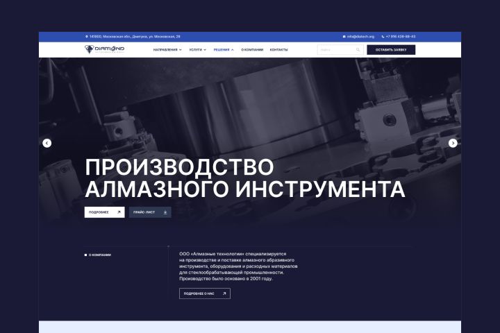 Главная страница для сайта производства алмазного инструмента Diamond-Technologies.