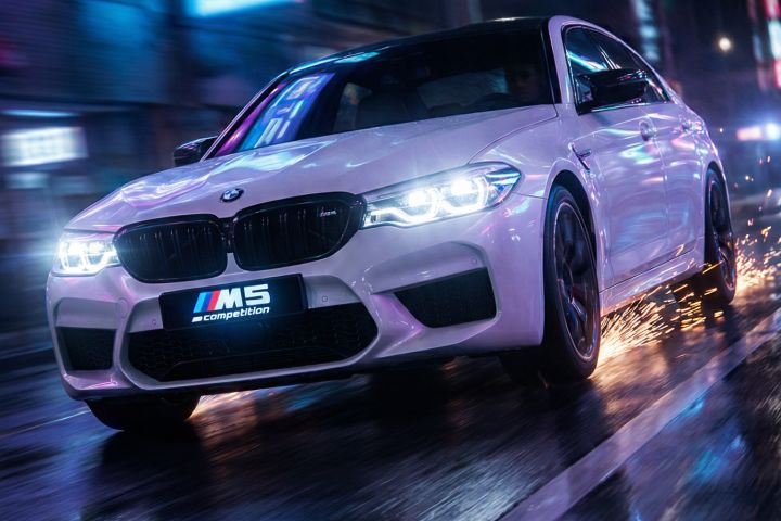 Клиент предоставил футажи BMW M5 Competition (уличные съёмки, авто в движении). Нужно создать короткий Reels/промо с акцентом на скорость, стиль и премиум-атмосферу.