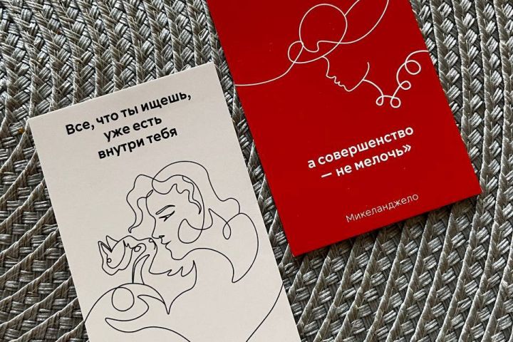 Карточки-линейные иллюстрации с мотивирующими надписями формата 50х80мм, отлично подходят для вложения в визитницу, под чехол телефона или в кошелек. Удобный и компактный формат. Открытками можно обмениваться и коллекционировать, у покупателя есть дополнительная мотивация купить товар именно у этого продавца. Открытки всегда на виду, имеют уникальный стиль, люди начинают интересоваться, откуда такая открытка. На карточках размещен кью ар код и название бренда для перехода в онлайн магазин. Получился эффективный и продающий дизайн, при этом приятный и не лишенный креатива и искусства.