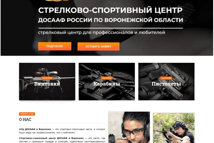 Разработка корпоративного сайта для ДОСААФ спортивно-стрелкового центра. Разработка фирменного стиля и верстка сайта.