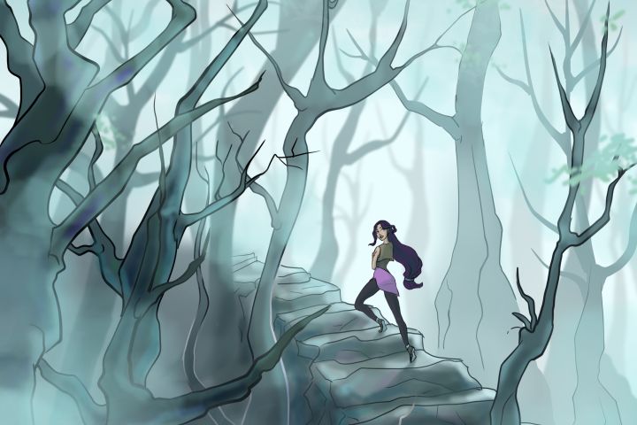Задача данной иллюстрации состояла в том, чтобы передать атмосферу леса и погрузить в нее героиню