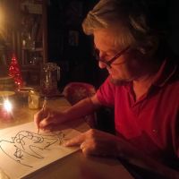 Анатолий Зверев часто делал портреты своих друзей и гостей во время встреч и посиделок. (и с вином). Я решил попробовать поработать в таком формате. Задача: сделать моментальный набросок, поймать характер, отразить минимальное сходство.