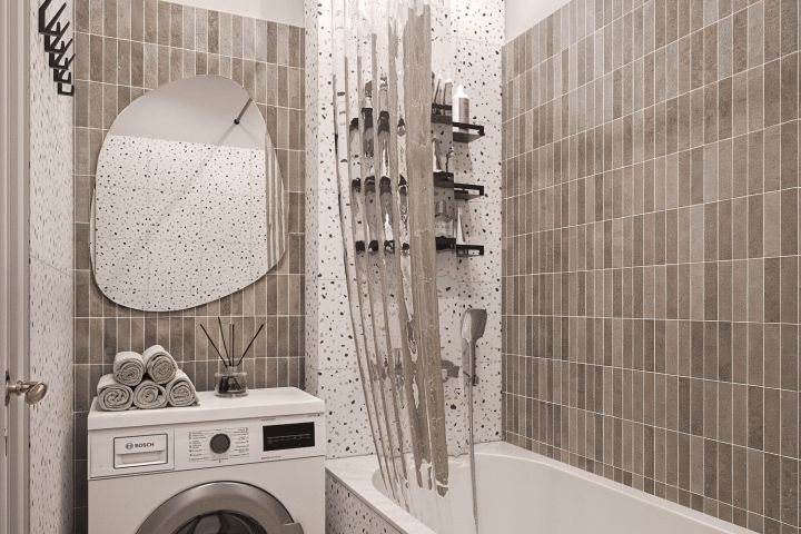 Работа полностью выполнялась автором профиля, задачей проекта было следующее - придумать интерьер для ванной комнаты в панельном доме, с последующей визуализацией