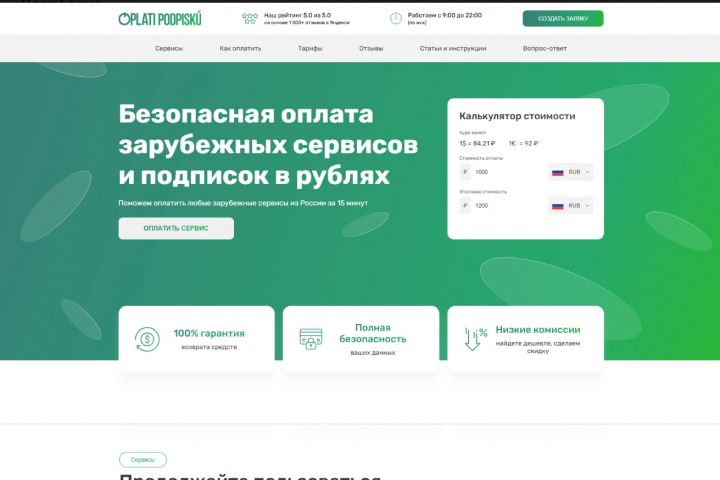Основная задача заключалась в создании продающего лендинга с большим количеством секций: описание сервиса, преимущества, тарифы, инструкции по использованию, ответы на частые вопросы и информационные блоки. Сайт должен был быть современным, визуально аккуратным, адаптивным и готовым к дальнейшему развитию проекта.