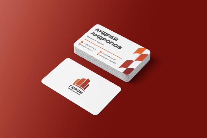 Дизайн визитки, созданный в рамках разработки фирменного стиля компании "ГЕРОИ"