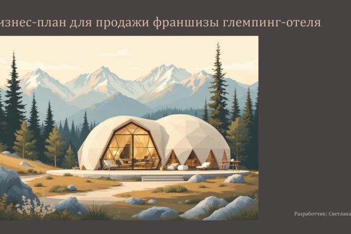 Подготовить документы для потенциального покупателя франшизы. Финансовая модель, как систематизированный шаблон для того, чтобы с одной стороны показать типичный проект глемпинг-отеля, с другой – есть возможность подстановки своих цифр. Бизнес-план – как руководство к действию для потенциального покупателя франшизы.