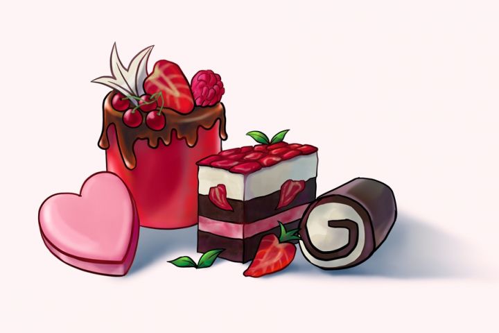 Иллюстрация разрабатывалась для кондитерского журнала в ярком простом стиле