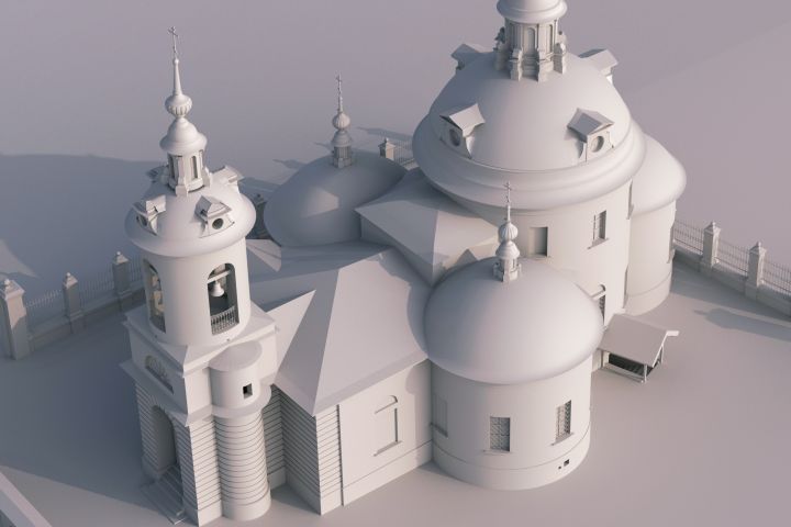 Заказчик - университет - поставил задачу создать точную и детально проработанную 3D-модель православного храма для использования в учебных и исследовательских целях. В качестве исходных данных были предоставлены обмерочные чертежи, что требовало внимательной работы с пропорциями, геометрией и архитектурной логикой здания.