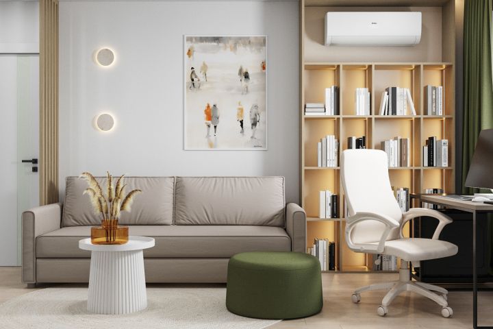 Дизайн квартиры с цветными акцентами, 50 квадратов.