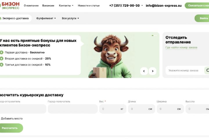 - Современный сайт, который отражает реальный масштаб и уровень сервиса Бизон.Экспресс.
