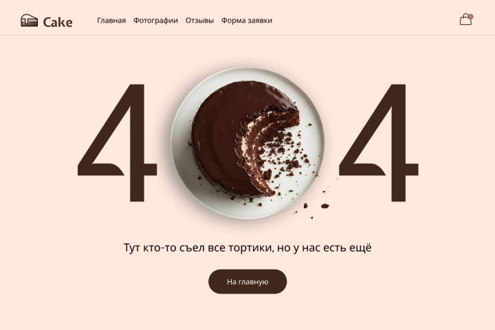 Бел создан центральный объект в виде торта чрезе AI, подобрана типографика и цветовые решения соответствующие бренду, в хэдере, тексте и кнопке был применён auto layout.