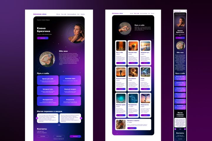 Задача была создать дизайн сайта для астролога, разместить информацию о заказчике и о его деятельности.