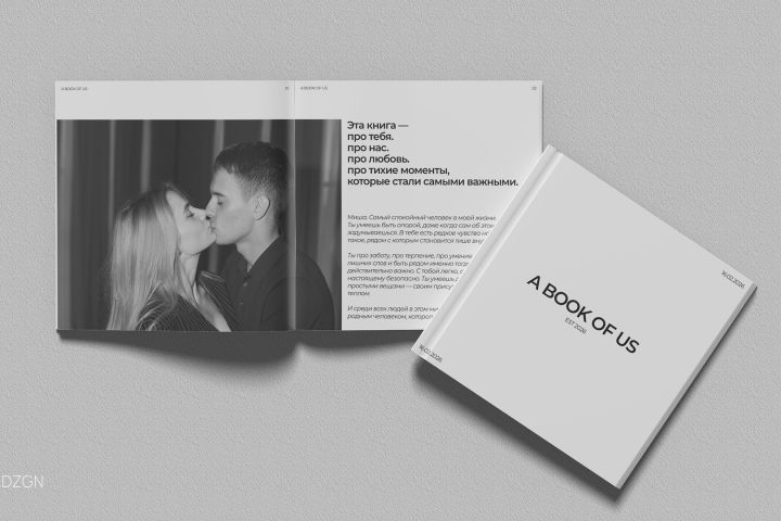 В результате была создана минималистичная фотокнига с премиальным визуальным характером, которая воспринимается как дизайнерское издание, а не классический фотоальбом.