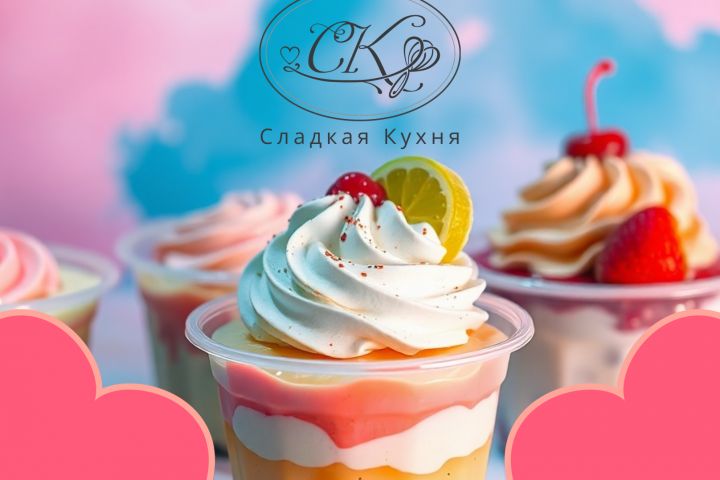 Название тёплое, домашнее — «Сладкая Кухня». Значит, и визуал должен быть таким же: понятным, мягким, аппетитным. Без лишней вычурности, зато с душой.