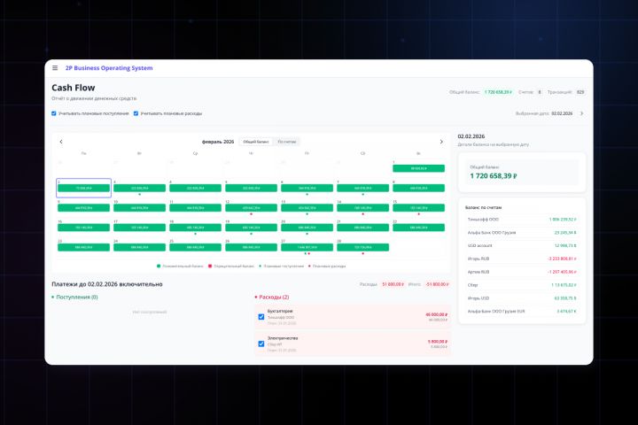 2PEOPLE BOS (Business Operating System) — внутренняя бизнес-платформа с AI-ассистентом для управления финансами, проектами и командой. Продукт был создан для решения реальной проблемы: данные по Cash Flow, P&L, сотрудникам и проектам находились в разных таблицах и сервисах, что усложняло аналитику и принятие решений.