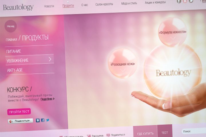 Разработан сайт для российского бренда от Концерна "Калина" Beautology Разработка велась в 3 этапа: - разработка концепции сайта - разработка дизайна - разработка программных модулей - поэтапная загрузка модулей