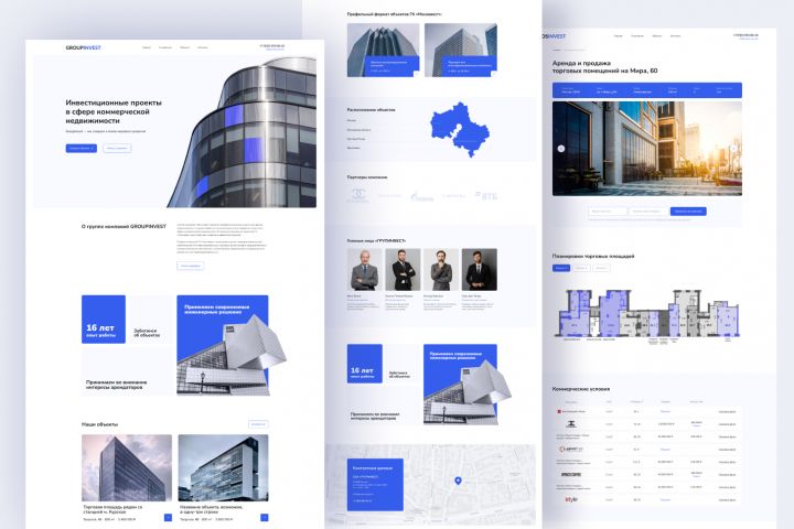 Требовался сайт для компании, которая сдает в аренду коммерческие помещения. Основная задача — представить объекты недвижимости и дать по каждому исчерпывающую информацию: расположение на карте, планировку помещений, характеристики. Управление сайтом должно было быть максимально простым, чтобы сотрудники компании могли самостоятельно добавлять и редактировать объекты без привлечения разработчиков. Дизайн — современный, в спокойной бело-синей гамме, без излишеств.