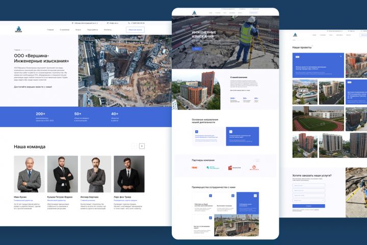 Компания занимается всеми видами инженерных изысканий для строительства: предоставляет исходные данные для проектирования и сопровождает стройки. Требовался простой, но информативный сайт, который познакомит потенциальных заказчиков с направлениями деятельности, покажет реализованные проекты, расскажет о преимуществах работы. Также нужен был раздел для публикации новостей и вакансий — чтобы компания могла оперативно сообщать о событиях и искать сотрудников.