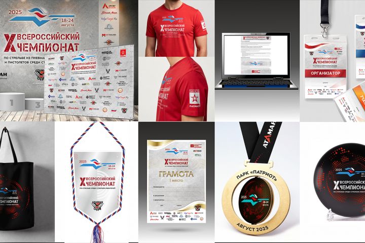 На основе общего стиля оформить пресс-воллы, грамоты, бейджи-аккредитации, вымпелы, пакеты, медали, шопперы, сувенирные тарелки. Был предложен комичный персонаж кот-стрелок. В рамках данного стиля оформлялись статьи на сайте и в соцсетях.