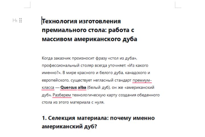 задача провести рерайт текста под статью по описанию изготовления с подробными техническими процессами: Стол из дубовой столешницы американского дуба.