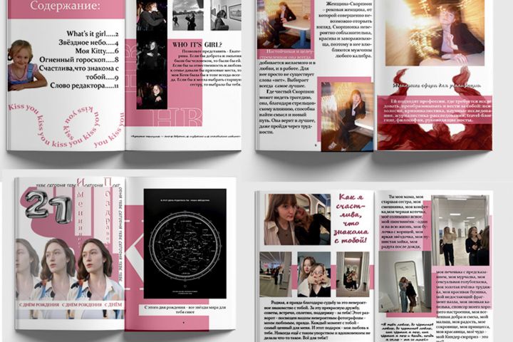 Разработала персонализированный журнал для именинницы в подарок на день рождения. В проекте собрала и обработала фотографии, продумала структуру и стилистику каждого разворота. Добавила поздравительные тексты и личные детали, чтобы передать тёплую атмосферу праздника. Дизайн выполнен в едином стиле — с подбором шрифтов, вёрсткой и акцентами на главных кадрах. Получился не просто фотоальбом, а настоящий глянцевый журнал с историей и настроением. Такой подарок останется на память и будет радовать именинницу ещё долгие годы.