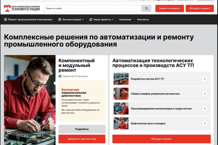 Наш клиент – компания ТЕХНОИТЕГРАЦИЯ специализируется на производстве промышленной электроники и автоматизации технологических процессов. Клиент хотел получить современный, удобный и информативный сайт, который будет приносить заявки на электронную почту.