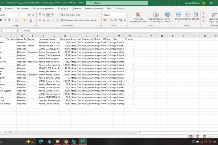 Спарсить данные с сети ритейлов и записать их в таблицу или БД.