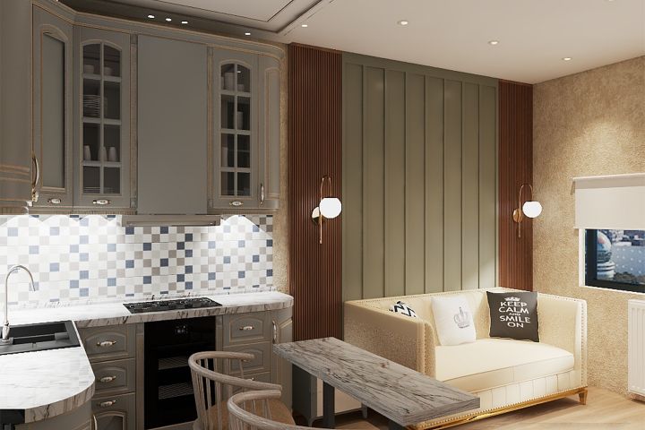 Интерьер выполнен в стиле современной классики с элементами минимализма. Это позволило подчеркнуть простоту форм и элегантность линий, делая пространство одновременно воздушным и стильным. Выбор цвета является ключевым фактором, влияющим на восприятие размера и атмосферы квартиры. Использование светлой нейтральной палитры обеспечивает чувство свободы и лёгкости, облегчая ощущение тесноты даже в маленькой квартире.