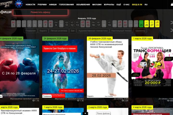 Заказчику требовалось создать на сайте полноценную систему афиш спортивных событий, аналогичную Яндекс.Афише, но с фокусом на спортивную тематику. Необходимо было: