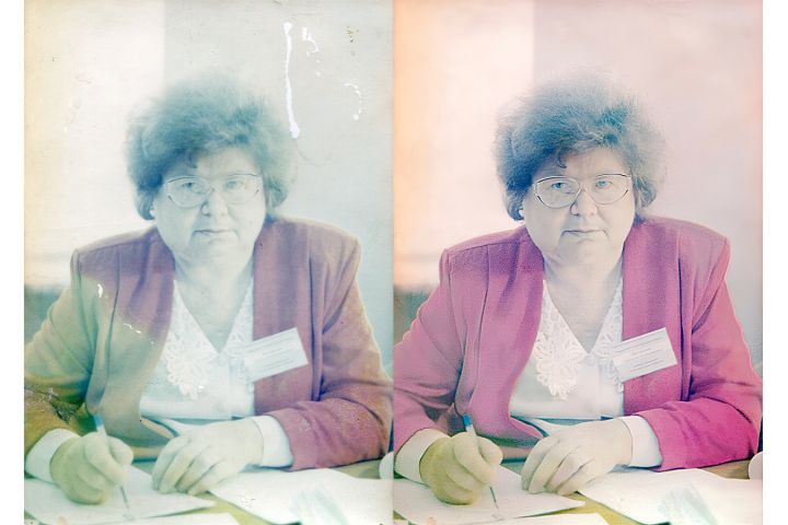 Клиент обратился с выцветшей старой фотографией. Задачей было восстановить цвета и устранить повреждения.