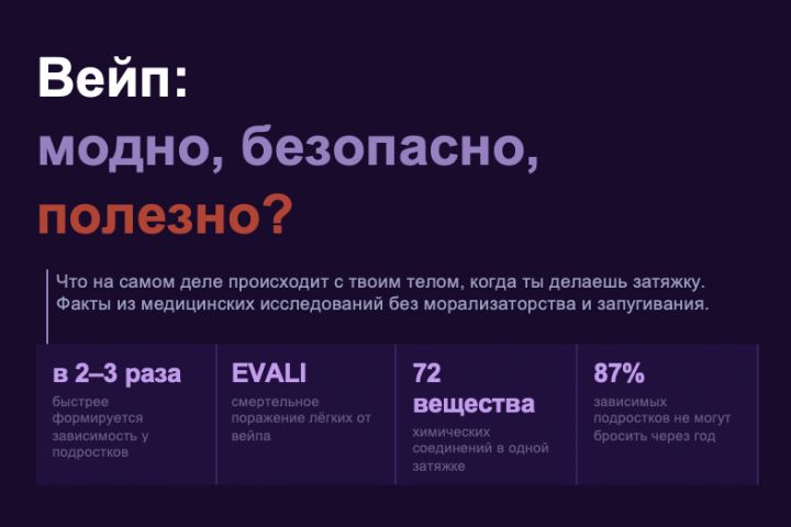 Написать просветительскую статью о вреде вейпинга для аудитории старшеклассников (14–17 лет). Без морализаторства — только факты из медицинских исследований.