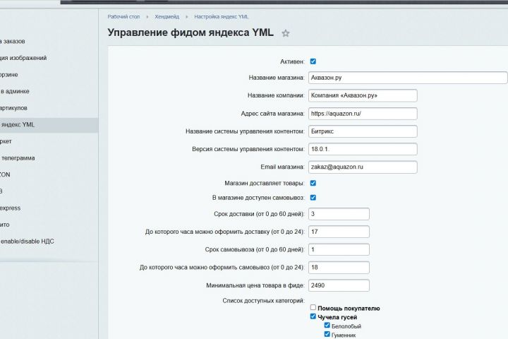 Для интернет-магазина требовалось настроить выгрузку товаров на Яндекс.Маркет через YML-фид. Стандартные возможности Битрикс не давали нужной гибкости:
