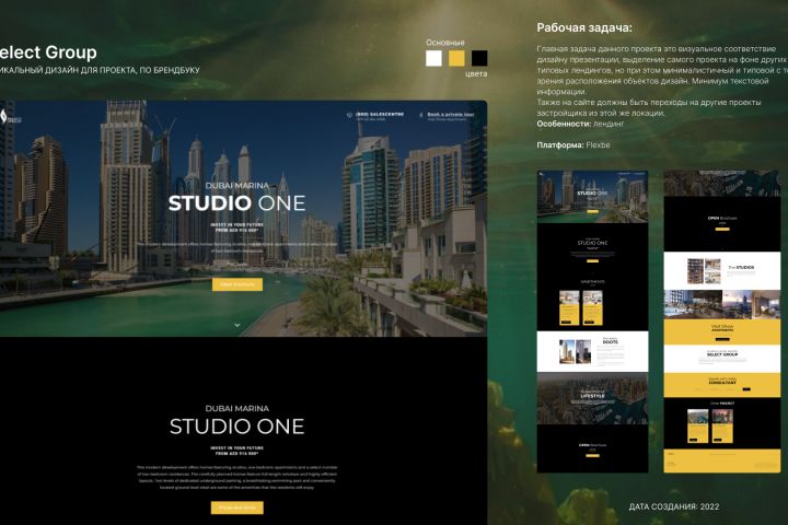 - Дополнительно: страница-заглушка до официальной презентации проекта, страница с материалами для брокеров и консультантов, страница о завершении продаж апартаментов.