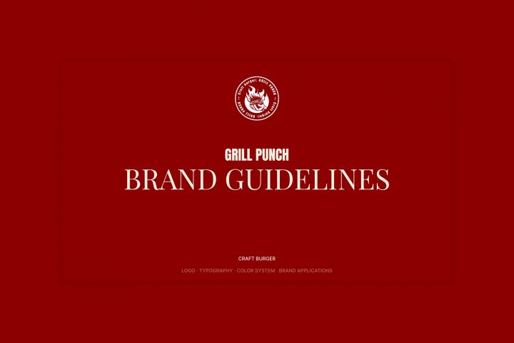 В результате получена целостная система визуальной идентификации: от логотипа и цветовой схемы до шаблонов и правил использования. Система обеспечила узнаваемость бренда GRILL PUNCH, передала атмосферу крафтового заведения и дала возможность быстро и единообразно оформлять любые маркетинговые материалы.