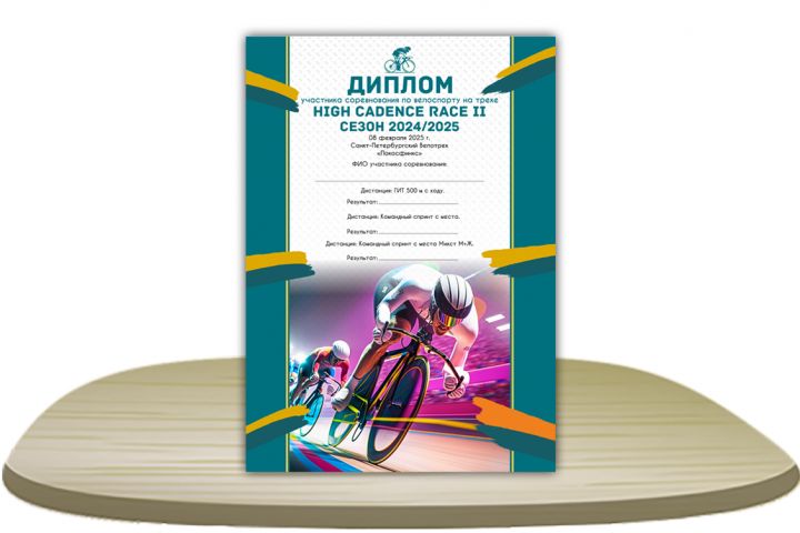 Разработан диплом участника для соревнования по велоспорту в формате А4.