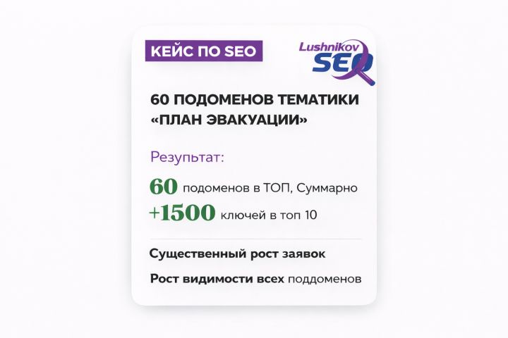 На всех поддоменах в сумме 1500+ основных ключевых фраз в ТОП 10.