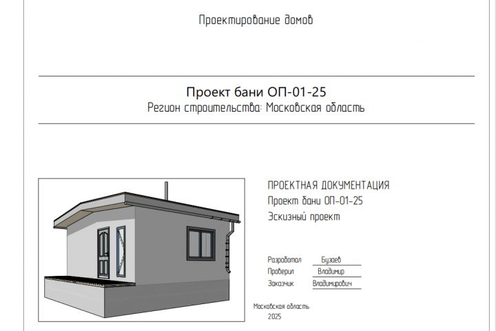 Требовалось выполнить проект дома-бани из газобетона для загородного участка