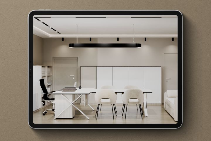 Серия 3D-визуализаций офисных помещений с акцентом на современную эргономику и корпоративный стиль. Задачей было создать функциональные и визуально привлекательные среды для команд, сохранив баланс между рабочими зонами и пространствами для коммуникаций.